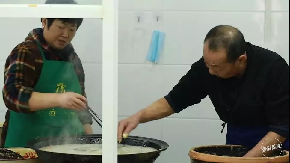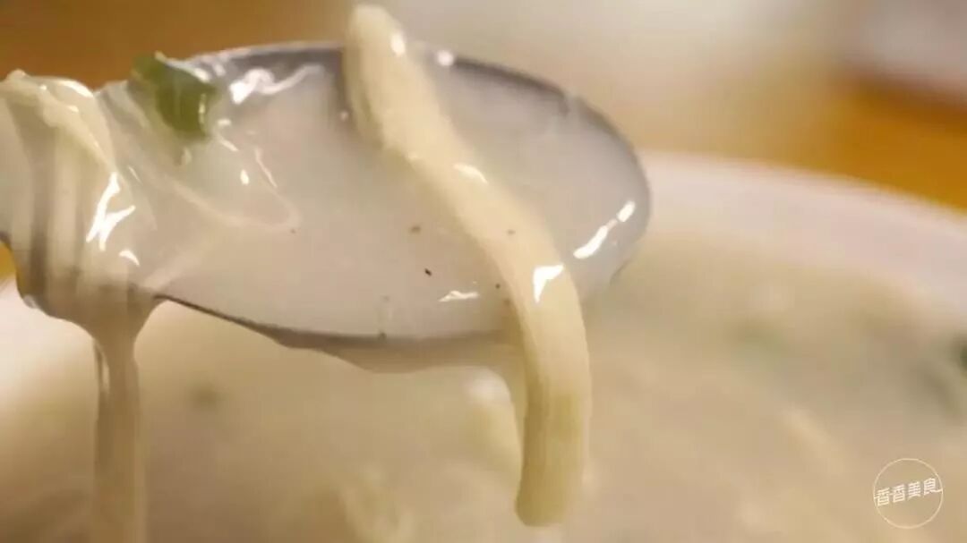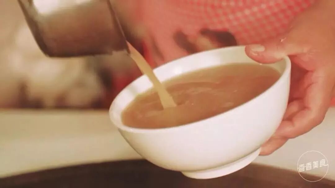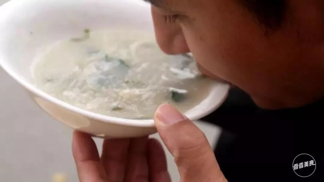 和普通胡辣汤洗过之后直接下锅的做法不同,白胡辣汤里的面筋是甩出来的。洗好的面筋抻成薄片儿,师傅会趁热放进水里,拿木棒不停地搅拌。别看这碗胡辣汤里没有半点儿荤腥,也没有浓重的料色,但滋味儿完全不比常喝的那些寡淡。