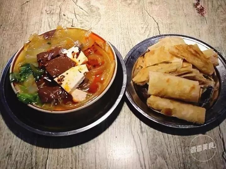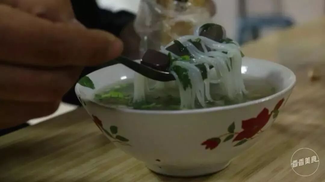 一碗扁粉菜里有豆腐、粉条、猪血等,挤挤挨挨的浸泡在油润的汤汁中。对于没吃过的吃货们而言,猛一瞅还以为是杂烩菜,其实不一样。吃上一口,粉条软滑筋道,豆腐软嫩,汤汁咸香浓郁,余味中透着微微的香辣。