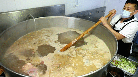 吃货都知道,一碗面的灵魂都在汤里。瞅瞅这硕大的汤锅,震撼不震撼?师傅告诉我们,店里每天都要用到两百多斤牛肉,基本是半头牛。牛肉牛骨熬汤,煮过的牛肉捞出来配上大料做成凉拌牛肉和酱牛肉。