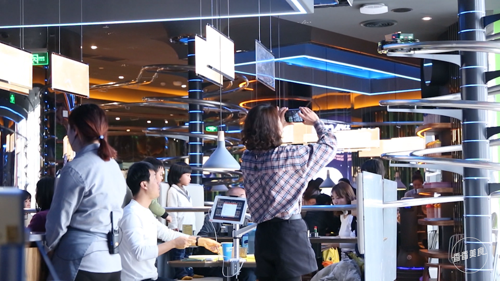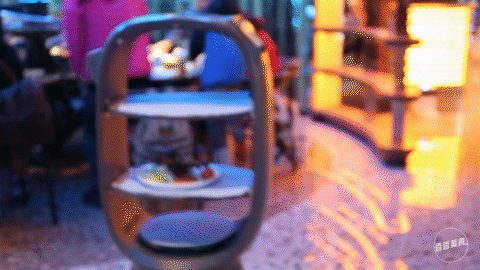 这是一家很酷的餐厅,上菜不用服务员,整个体验满是科技感。以“失重”为主题,店里少不了要设置大量的科技产品。上菜要么靠机器人,要么就靠重力顺着轨道从天而降。眼花缭乱的同时,最直接的效果就是孩子们吃饭很专注,爸爸妈妈们再也不用担心喂不进去饭啦。