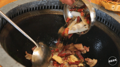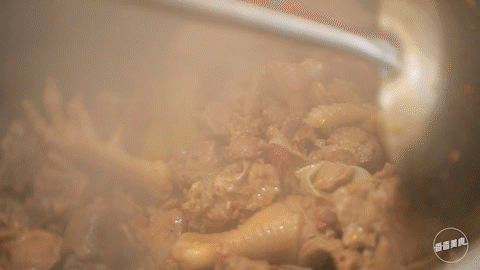 是地锅没错,但这儿的选择可真不少,牛尾、鹅、柴鸡、排骨、五花肉... ...基本上能做地锅的肉类在这儿全能吃得到,而且地锅里的食材可以任意添加。就拿地锅鸡来说,肉质Q弹有嚼劲,味道在酱香的基础上还能品出一丢丢的麻辣,整体的口味复合又柔和。