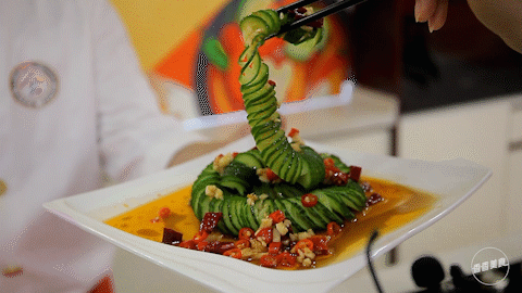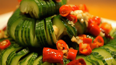 小编碎碎念:摆盘时一定要动作轻缓,防止黄瓜断掉影响美观。