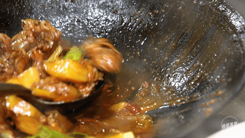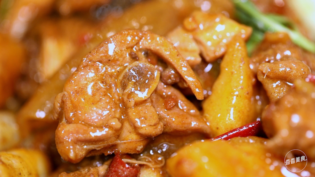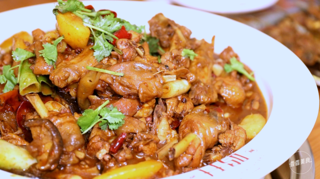不得不说,炒鸡卖相还是相当诱人的。热气腾腾的一大盘端上来,就能把吃货的情绪烘到最高点。不管是酱色的鸡肉、微黄的土豆还是挂着汤汁的粉皮,都让人有拿起筷子大快朵颐的冲动。