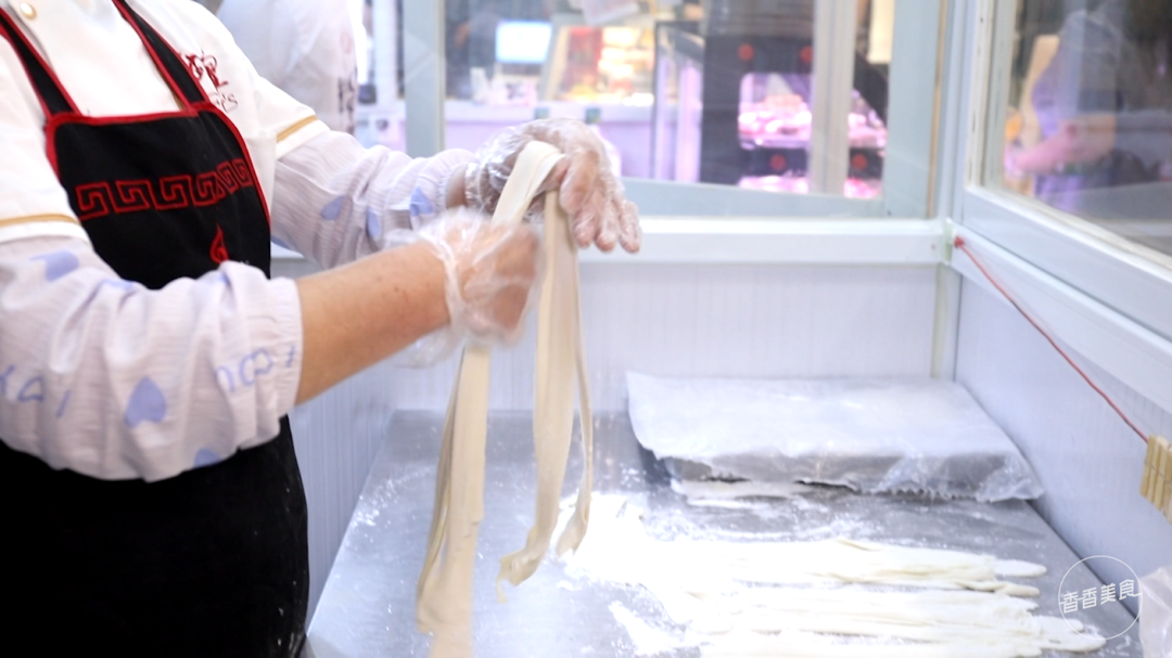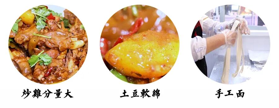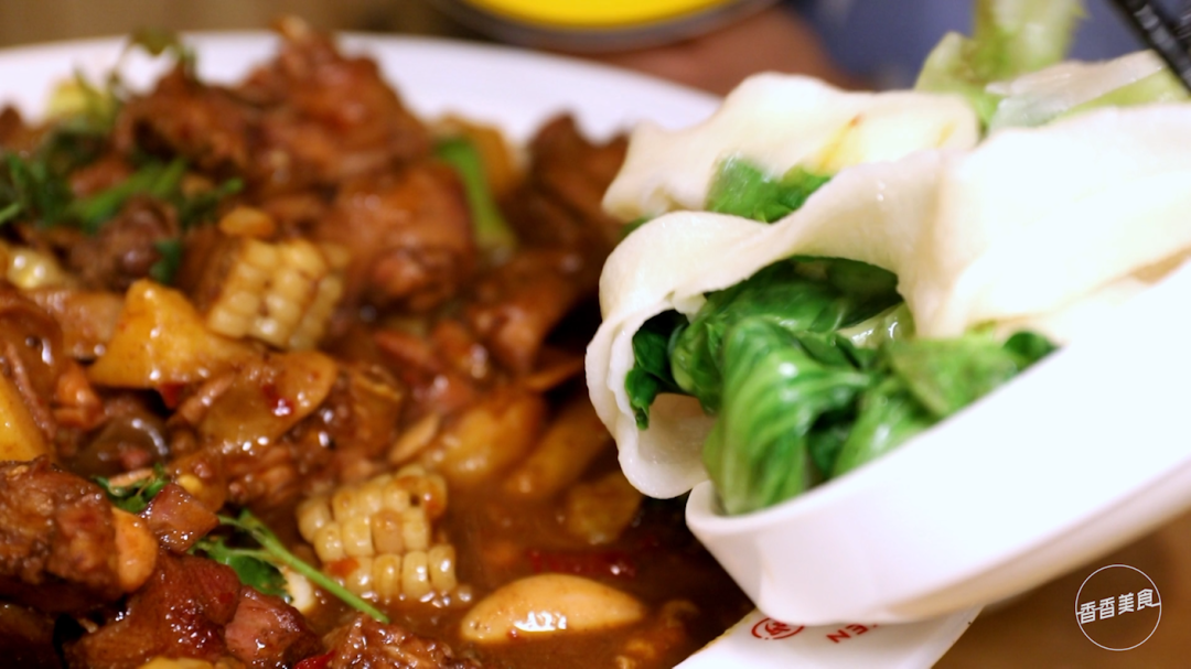 吃炒鸡的标配是什么?估计绝大多数人的答案就是面条。我们了解到每份大盘鸡都会送一份手工面,大概有四两左右。店里有一个大姐,是专门做手工面的。面条略宽,和青菜煮熟后拌进炒鸡里,很挂汁。入口滑溜溜的,酱香味很足。