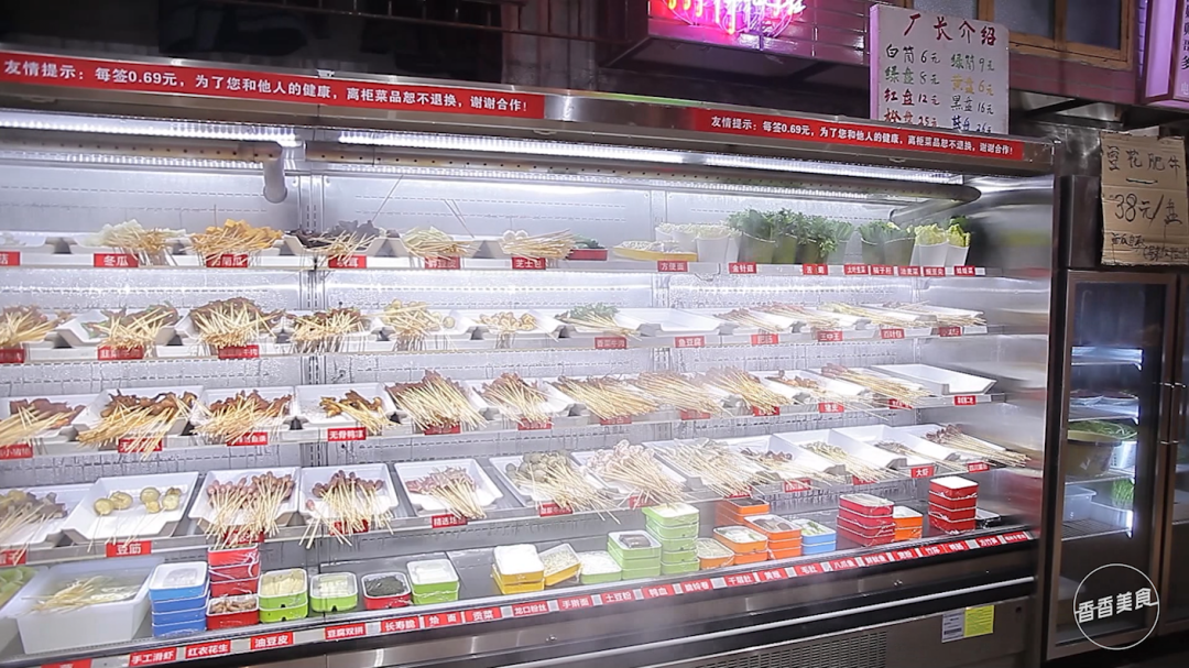 店里的串串区挂着“顺城街批发市场”的牌子,很有意思。串串种类挺多,放眼一望,足足几十种,很贴心的是串串区一直开着冷气保持新鲜,而且菜品补充的也比较快。