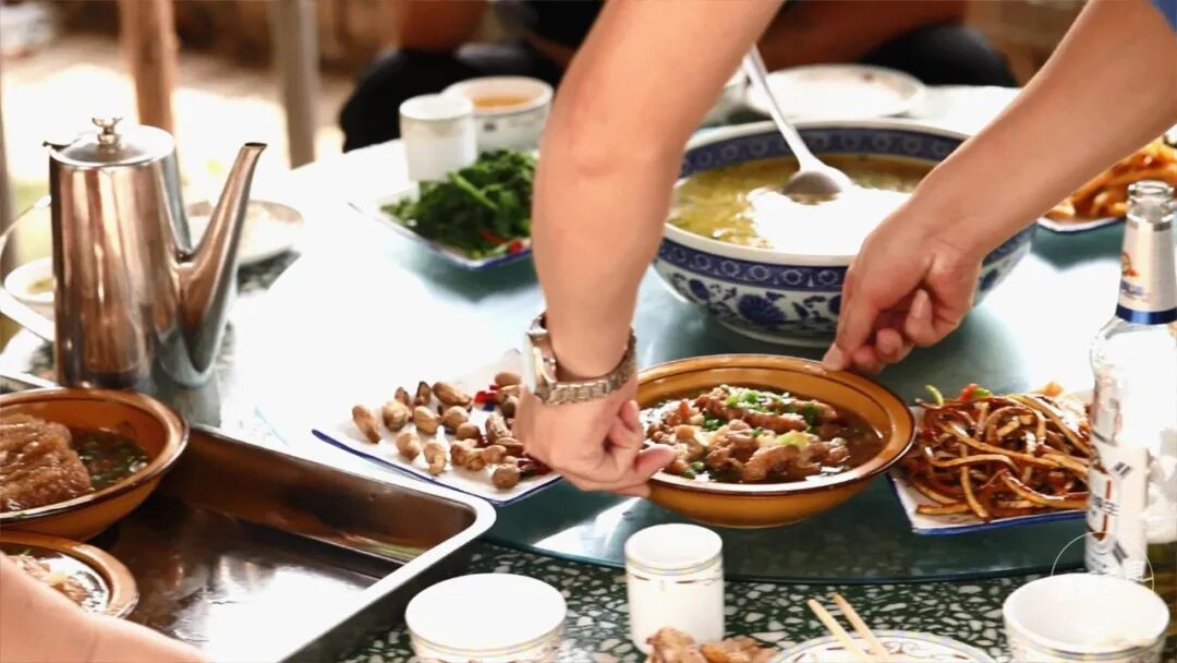 大多食客来到这里,都会点上几份特色菜。焖子、扣碗、凉拌菜……虽然食材很常见,却能吃出记忆里老家的味道。吃完饭了再举根杆子打打枣,既能消消食,也能体验到久违的开心与快乐。