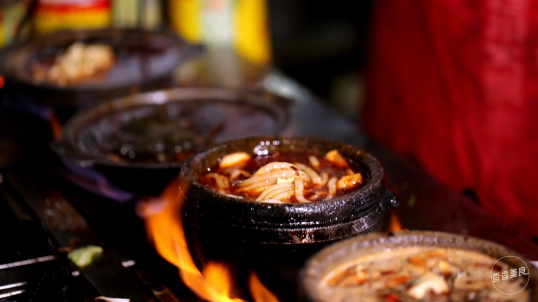 在这里吃米线,还有一个黄金搭档——焦炸面筋。干吃酥脆,泡汤里外软内韧,焦香适口。就这样吸溜着,滚烫着,眉飞色舞地吃完这一锅。最后再来碗梨水和杏仁茶,舒服了!不信,你看小飞!
