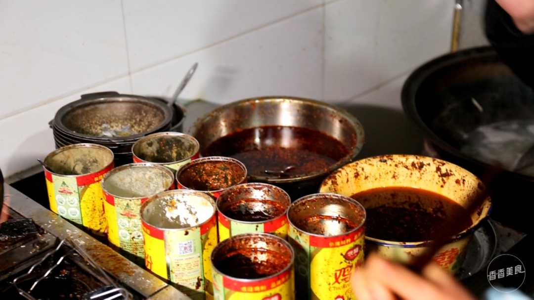 平时在饭店吃饭,微辣中辣特辣怎么区分?绝大多数饭店都是炸一种辣椒,然后根据食客口味调整辣椒的量就行。这家的辣椒却不止一种,沿着灶台这一排都是辣椒罐,不同辣度所用的辣椒不同。