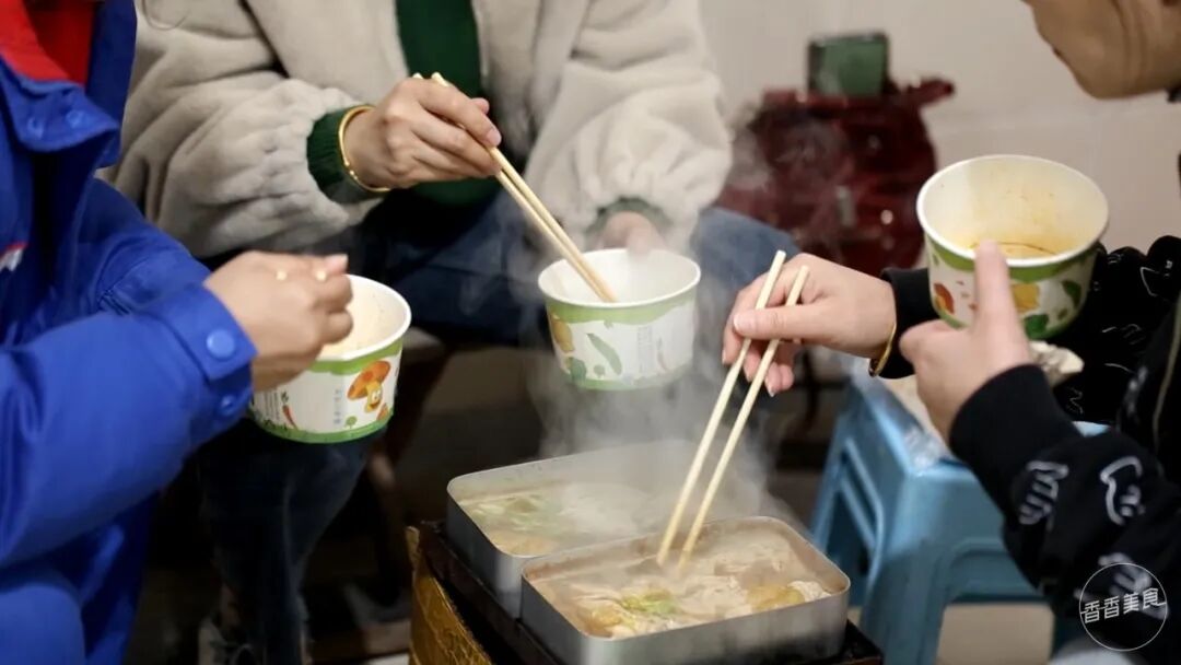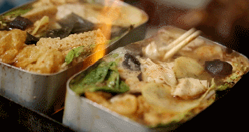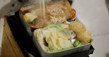 看吃法,跟我们常吃的串串香小火锅比较相像,区别就在于食材是直接在饭盒里煮的。听老板娘讲,这种吃法是婆婆几十年前无意中发明的,然后一直流行到现在,不知不觉间就成了当地的 一种特色小吃 。