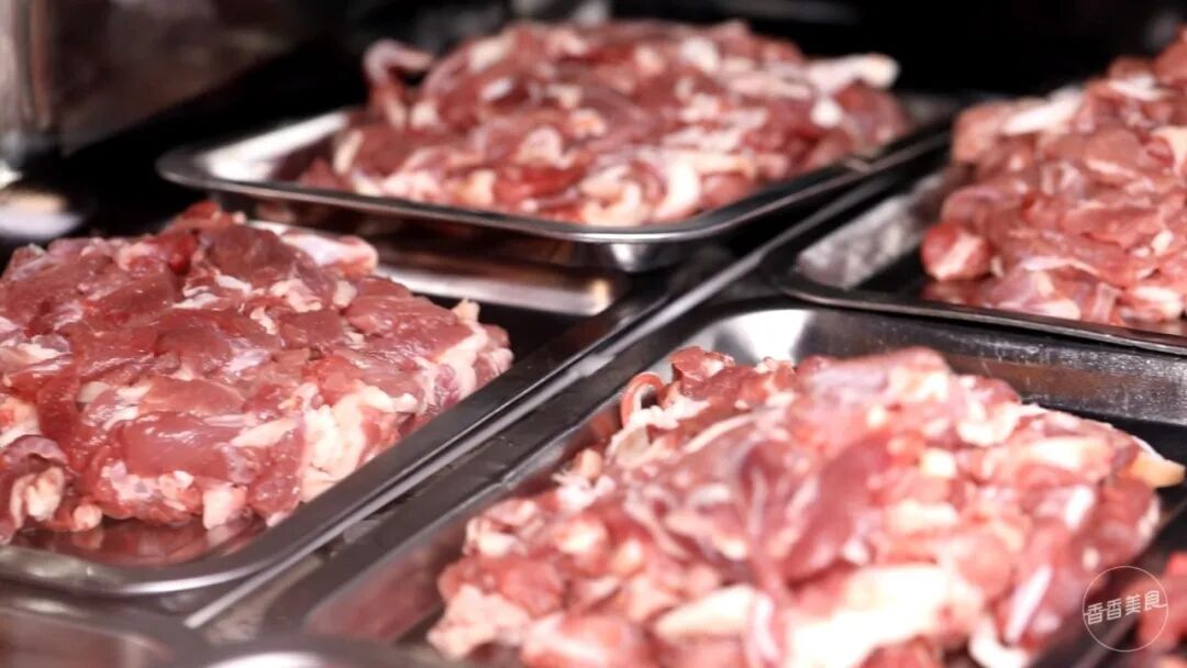 羊肉香嫩软烂,离不开食材本身的选择。养殖期十个月,体重30-40斤的小山羊,才能保证口感。师傅讲,这样的羊肉切成薄片,下入锅中两三分钟就能开吃。只有肉足够好,才能承受得住这么极简而任性的吃法。