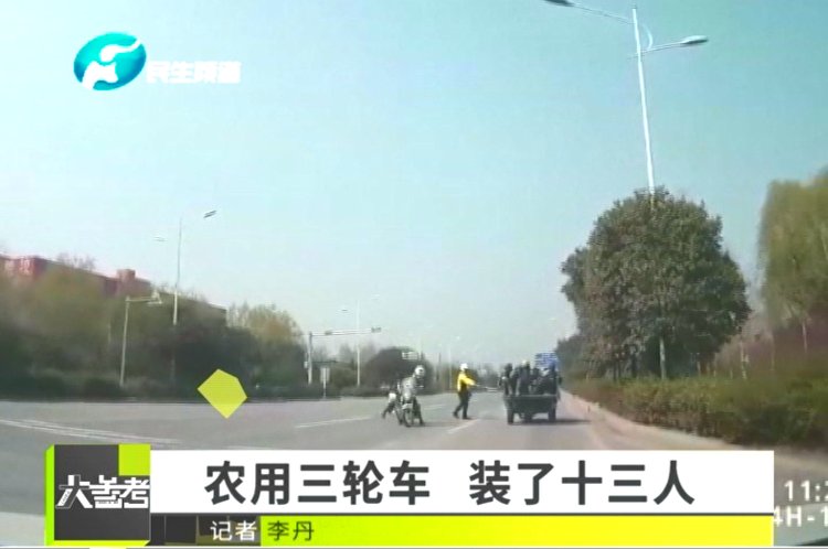 该罚!一辆无号牌农用三轮车拉十三人上路被查