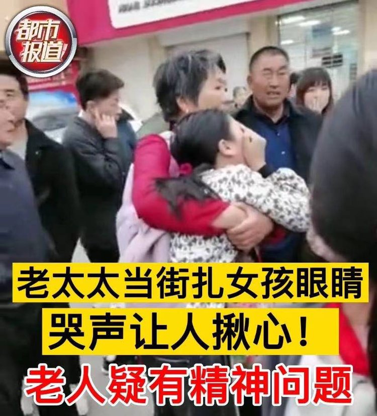 老太太当街扎女孩 眼睛,哭声让人揪心!老人疑有精神问题