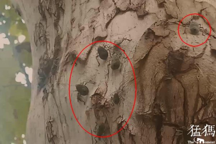 接群众反映后,丰产路巡防员赶来查看发现,这种被大家称为‘臭屁虫’的虫子,有成人的指甲盖大小,周身呈灰色,背部带有花斑。当队员在树下做短暂停留时,这种样子颇为瘆人的虫子竟毫不客气的飞落到人的头顶,吓大家急忙用手去拍打。经队员查看,该路段有三棵法桐树上的虫害较为严重,从树干直至树枝当中,到处爬满这类似的子。