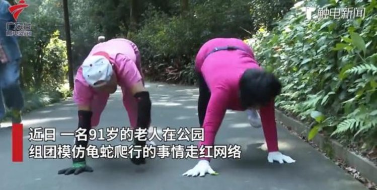 近日,广州一名91岁的老人每天带着一群老人在公园组团模仿龟蛇爬行的视频走红网络。老人称自己从小爱运动,后来生病琢磨出龟蛇爬行,以此锻炼筋骨,延年益寿。