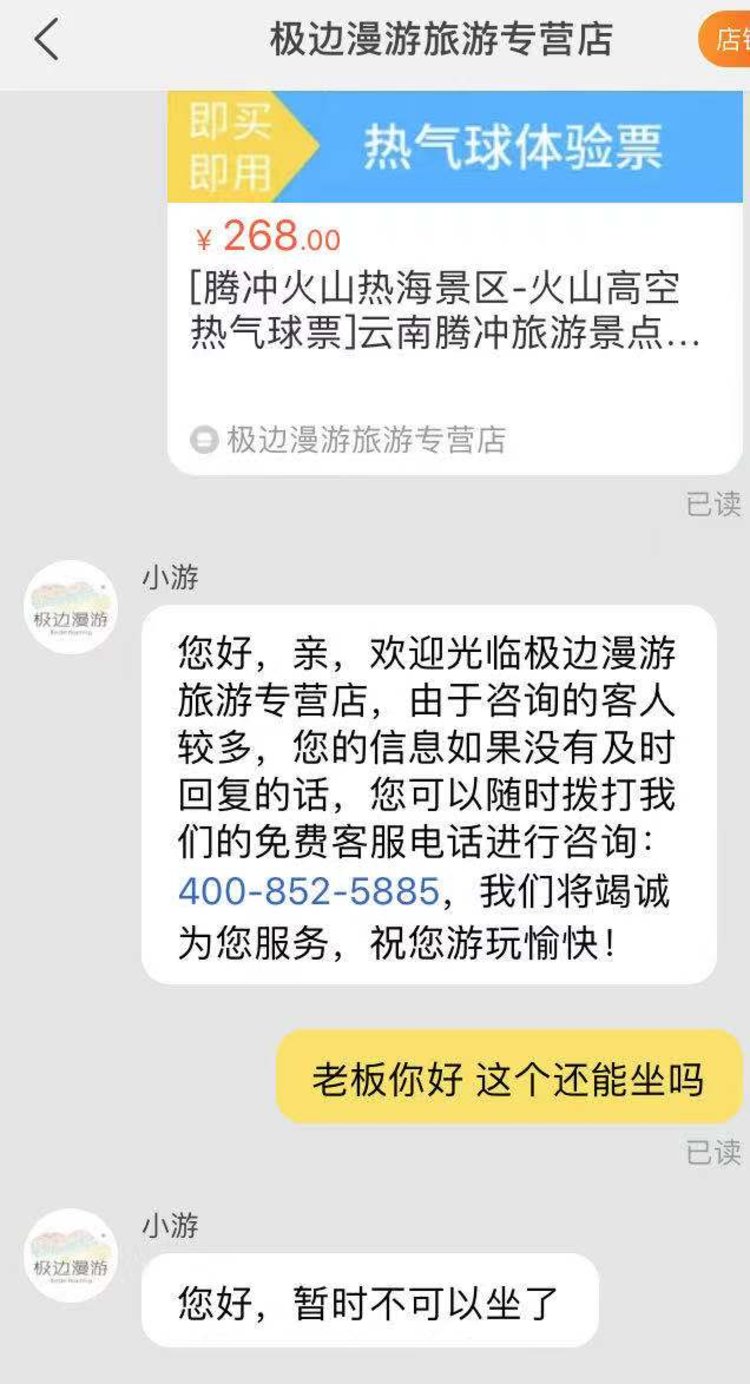 记者在几款旅游APP上搜索发现,虽然可以在线购买热气球体验门票,但客服均表示目前无法使用,也不清楚热气球项目何时恢复运营。已经购票的用户可以在线退款。