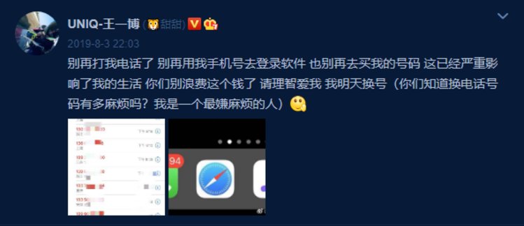 2019年8月,王一博的手机号码就被意外泄露,各种骚扰电话疯狂涌入,有人还用他的手机号码登录第三方平台软件,王一博的生活受到了非常严重的影响。终于忍无可忍的他发微博请求网友们停止无理的行为了,也是够让人心疼的。