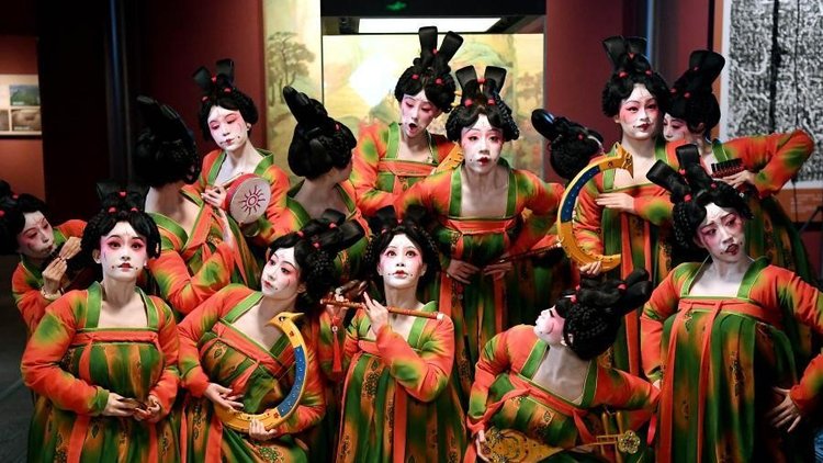 再现了《唐宫夜宴》中经典的舞蹈场景。
